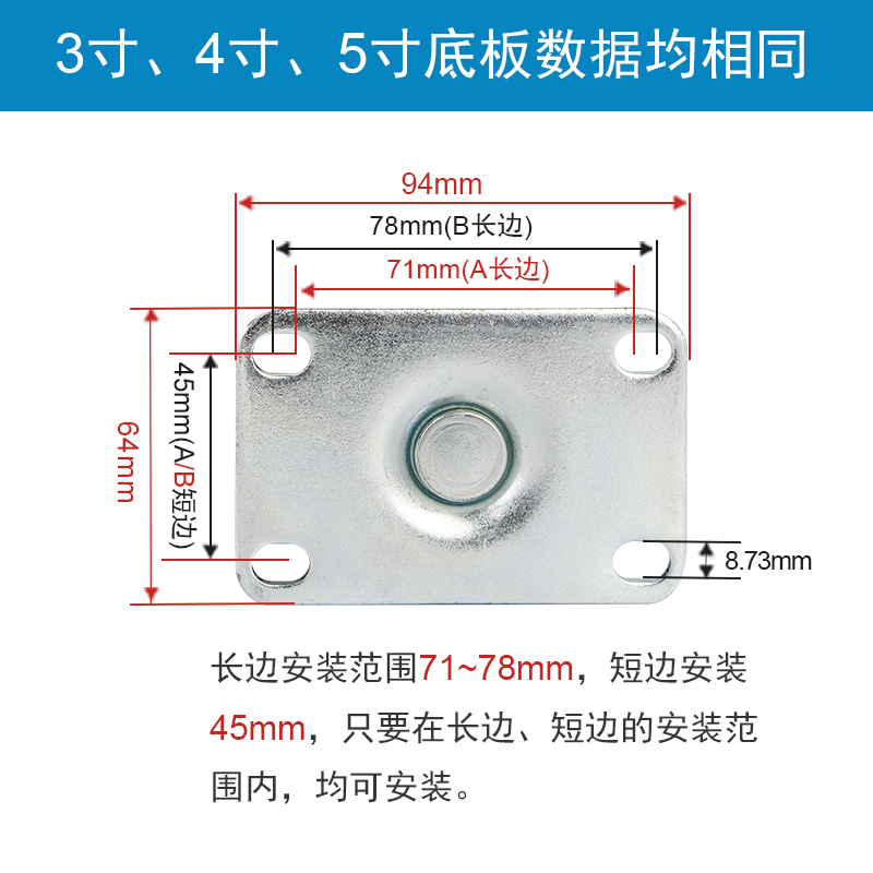 Koshun Flat Bottom Castors 3 Inch 4 Inch 5 Inch CPT-4856-85 Medical Instrument Wheel Beds Wheels Medical Trolley Wheels