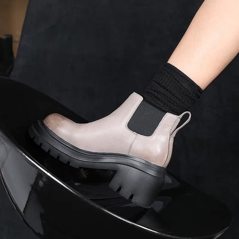 Autumn and winter retro round toe Martin boots thick-soled leather chimney boots Chelsea short boots women's muffin bottom bare boots in the heel