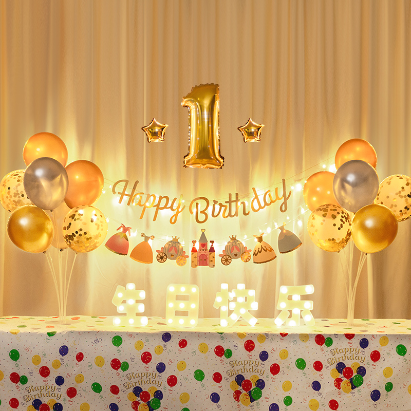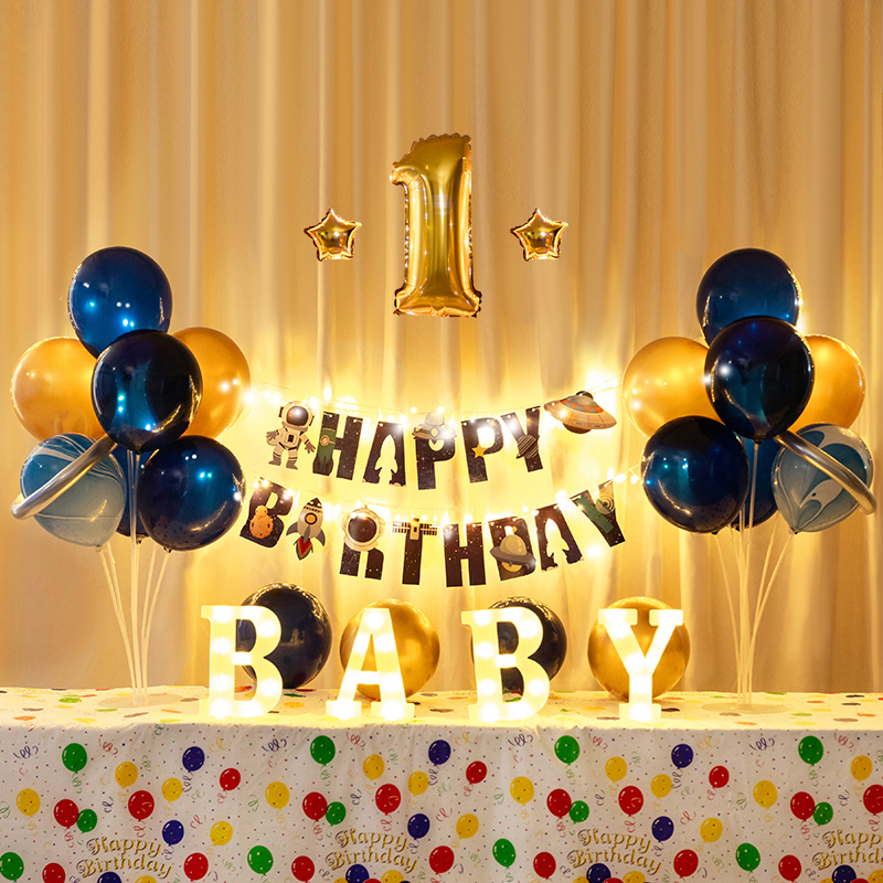 Net red in birthday decorate baby 1 year old girl boy arrange happy party children scene background wall