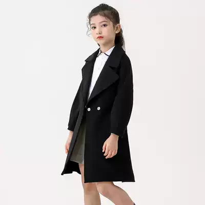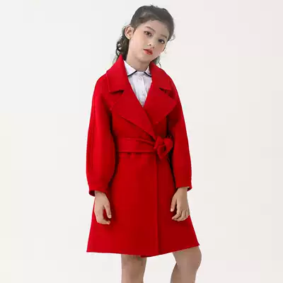 Girls' cashmere coat medium and long version children's double-sided cashmere coat autumn and winter woolen coat