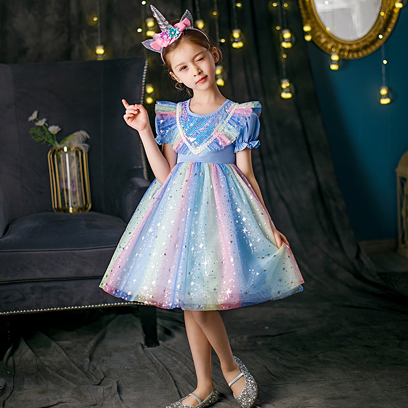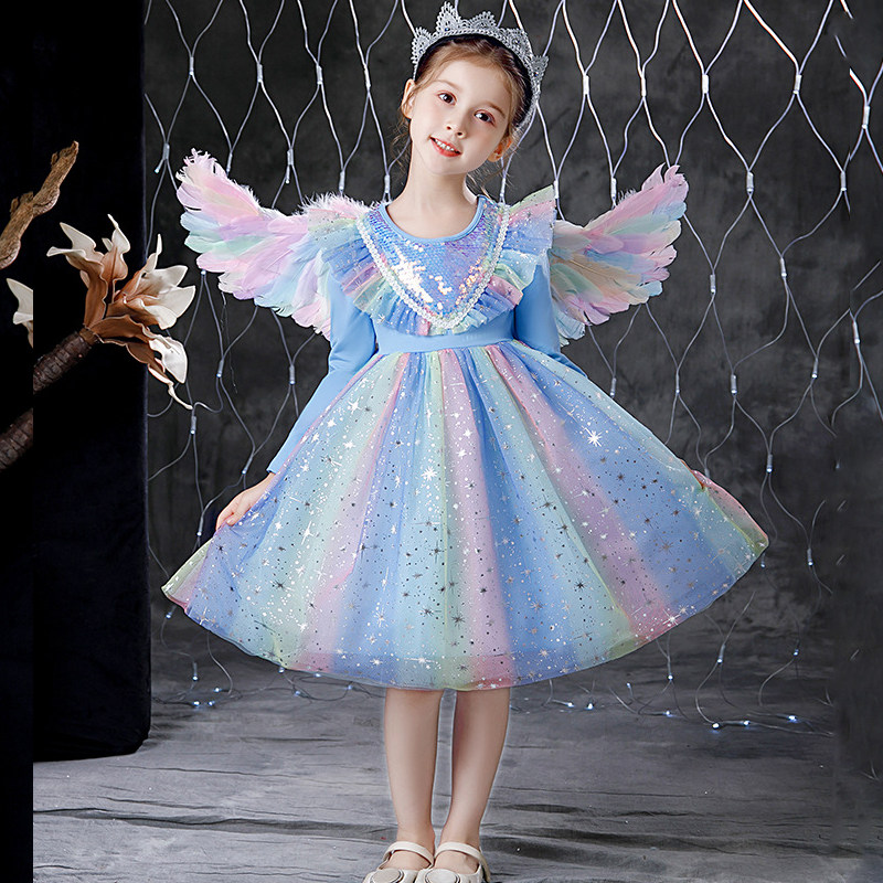 Girls 2022 new Summer pure cotton polo Rainbow Dress Ocean Dress Wings Love Tha Princess Dresses Princess Dresses