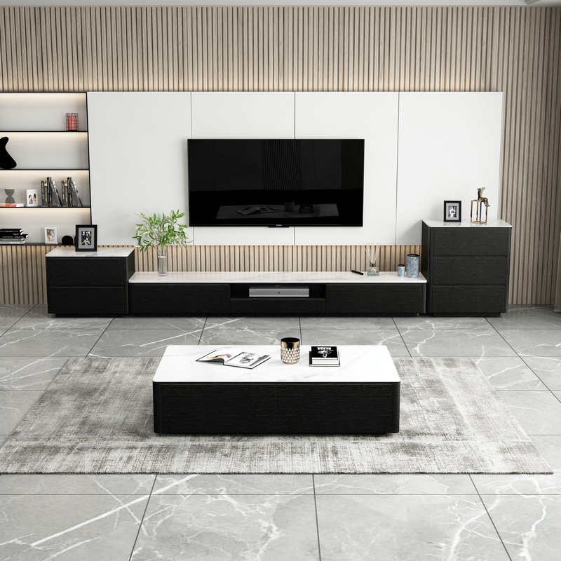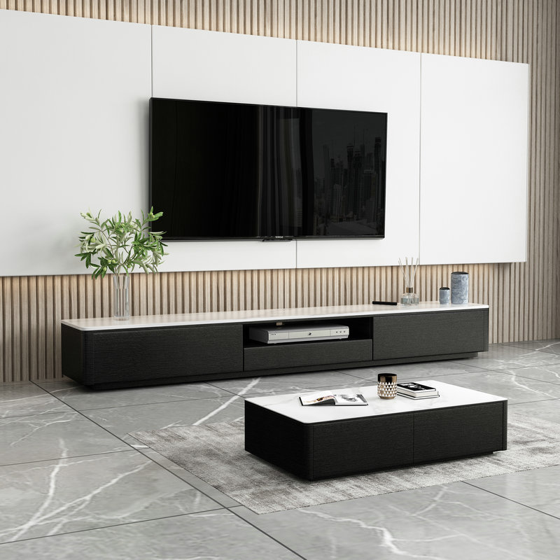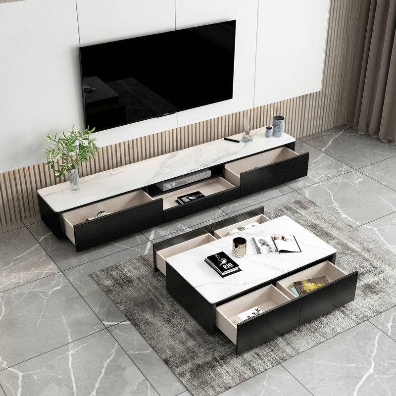 Italian modern minimalist rock plate TV cabinet coffee table combination living room TV cabinet black hollow simple modern