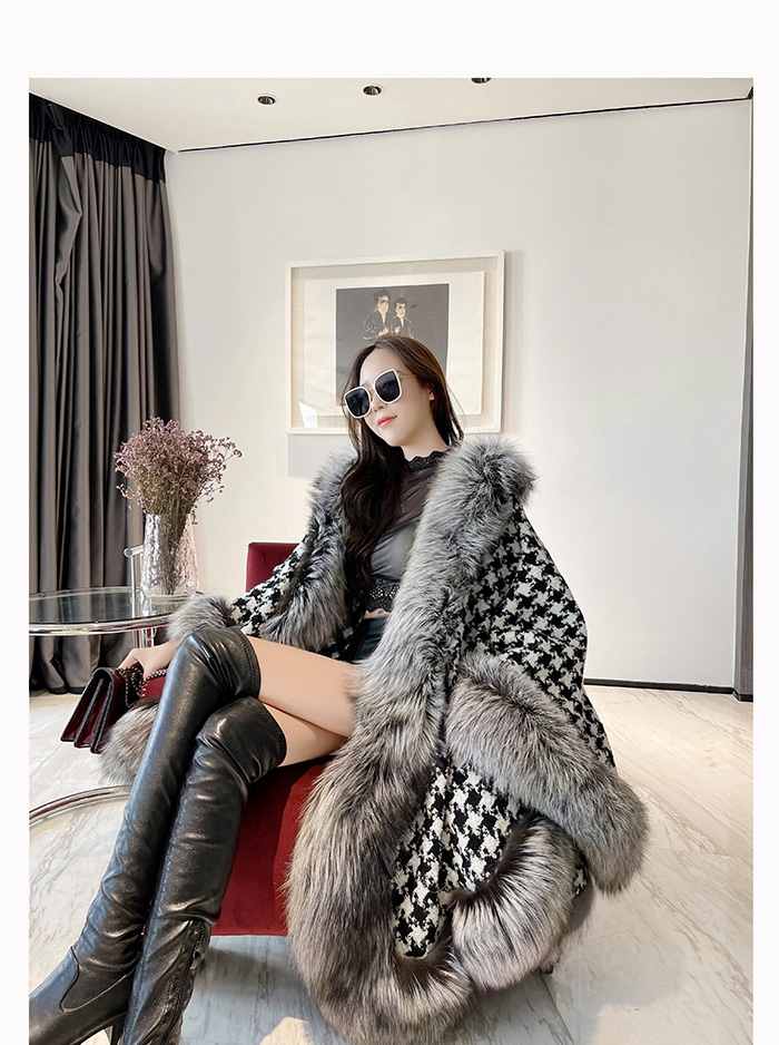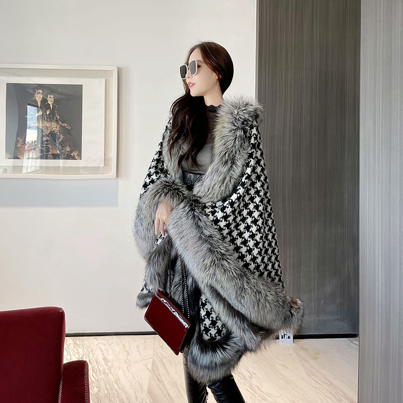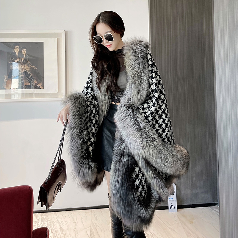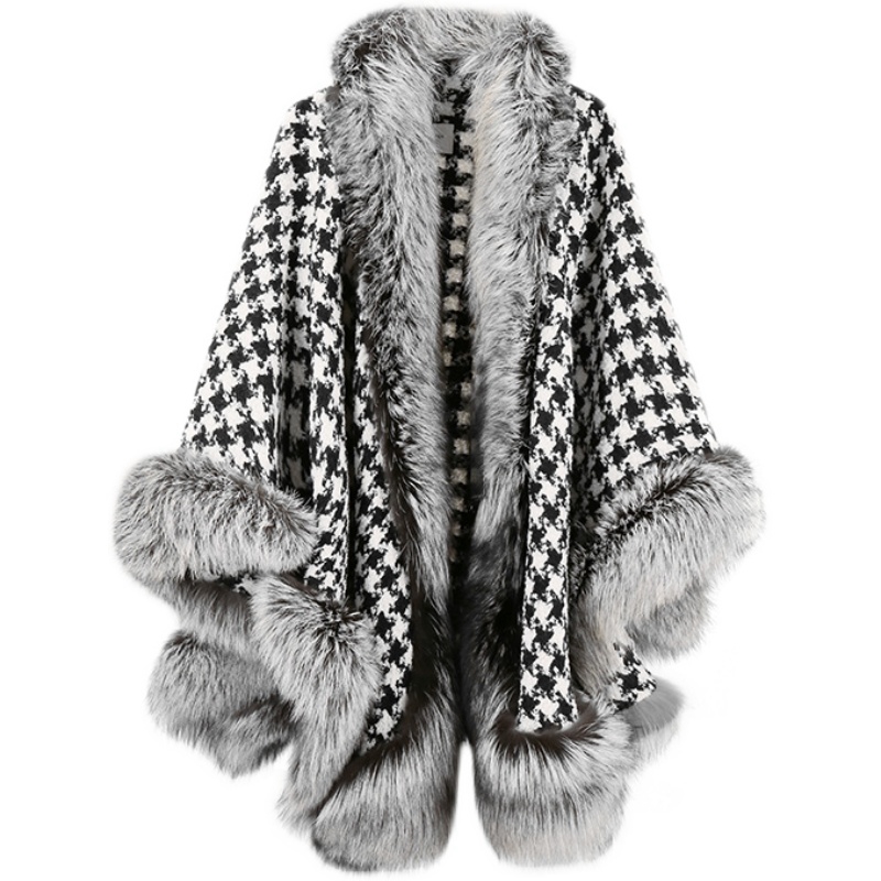 Fur shawl cloak coat women's winter houndstooth advanced imitation fox fur oversized irregular cloak thickened and warm