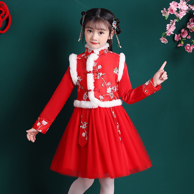 Love the family Han dress girl autumn winter Chinese wind thickens the winter baby's Tangrobe Baby New Year's Fashion