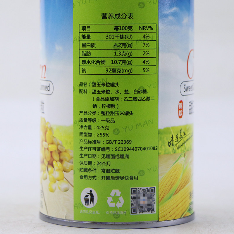 Canned corn grain