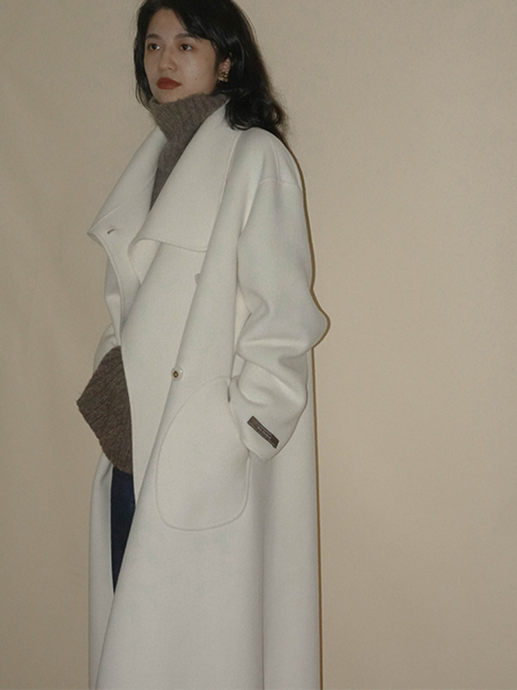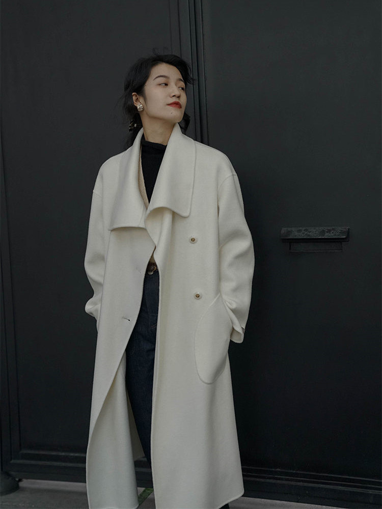 2021 autumn and winter new French bifacial cashmere dresses with a long version of a small crowding retro temperament white fur coat