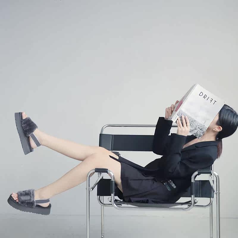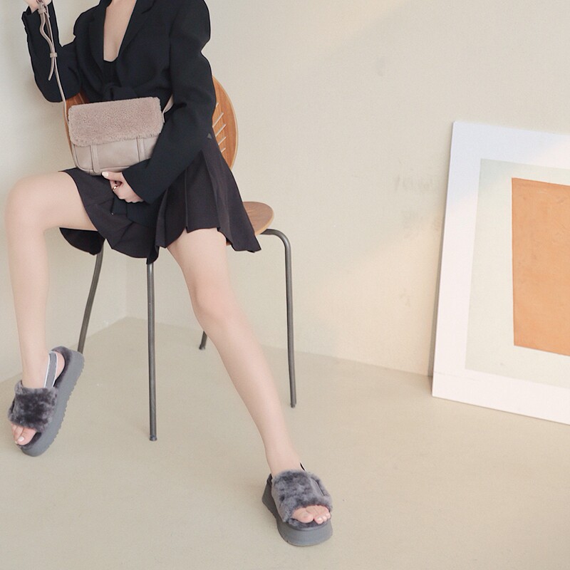 Women's shoes wool shoes female outside wearing upper foot theorizer heightening and warm-lined with thick bottom fur sandals