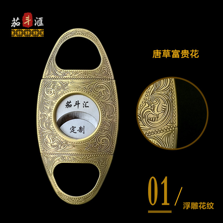 Rich Expensive Golden Jifeng Season Wind Tango Flowers Themed Fashion Metal Stainless Steel Blades Can Lettering Cigar Scissors