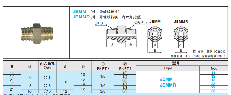 Supply mold cooling water with JEMM11 12 23 31JEMMR21 22 JEMF external thread conversion joint