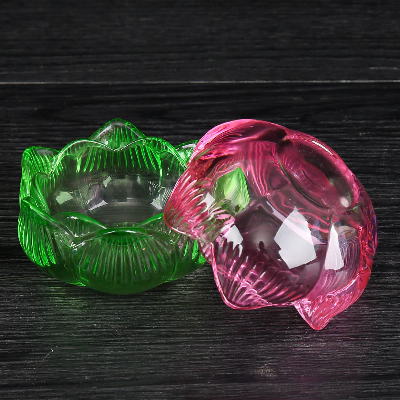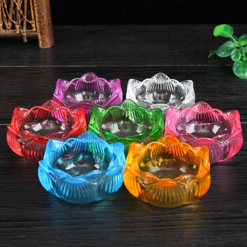 Crisp Oil Lamp Holder Seven Colorful Transparent Lotus Indoor Home For Foe Butter Wax Candle Holder long Ming light Crisp Oil Crystal Lamp Holder