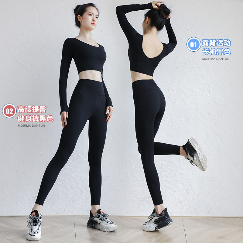 Yoga clothing women's autumn and winter sports suit professional high-end fashion with chest pad sexy temperament long-sleeved net red fitness clothing