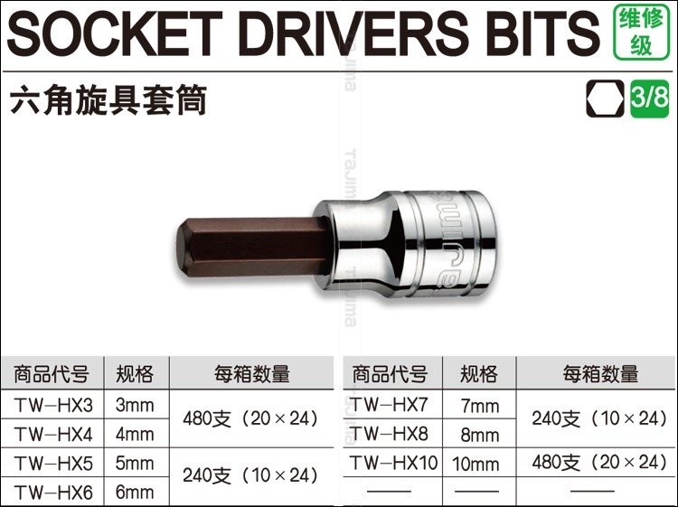 Japan TAJIMA Athleta Island Inner Hexagon Sleeve Inner Hexagon Sleeve Tool 3 8 " TW-HX Series