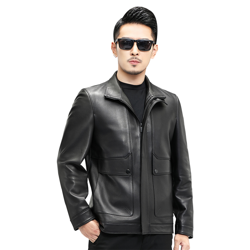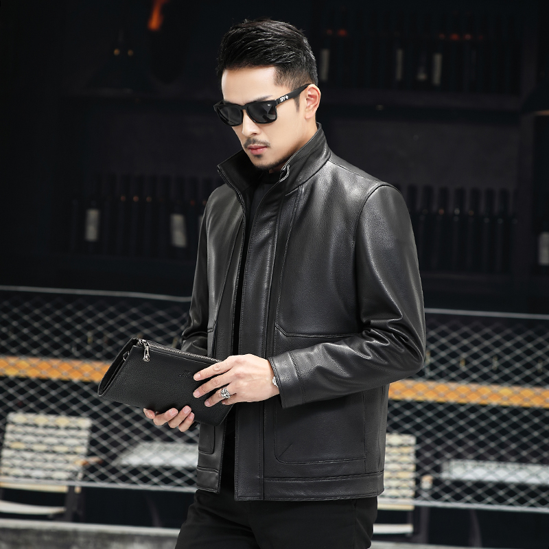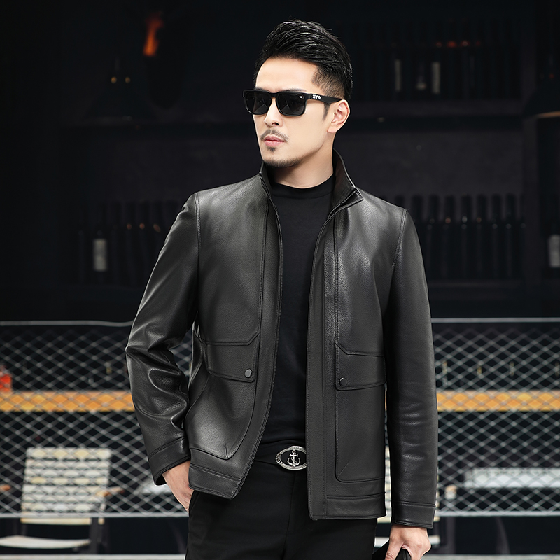 New Haining leather jacket men's genuine leather short lapel top layer sheepskin jacket men's slim casual thin coat