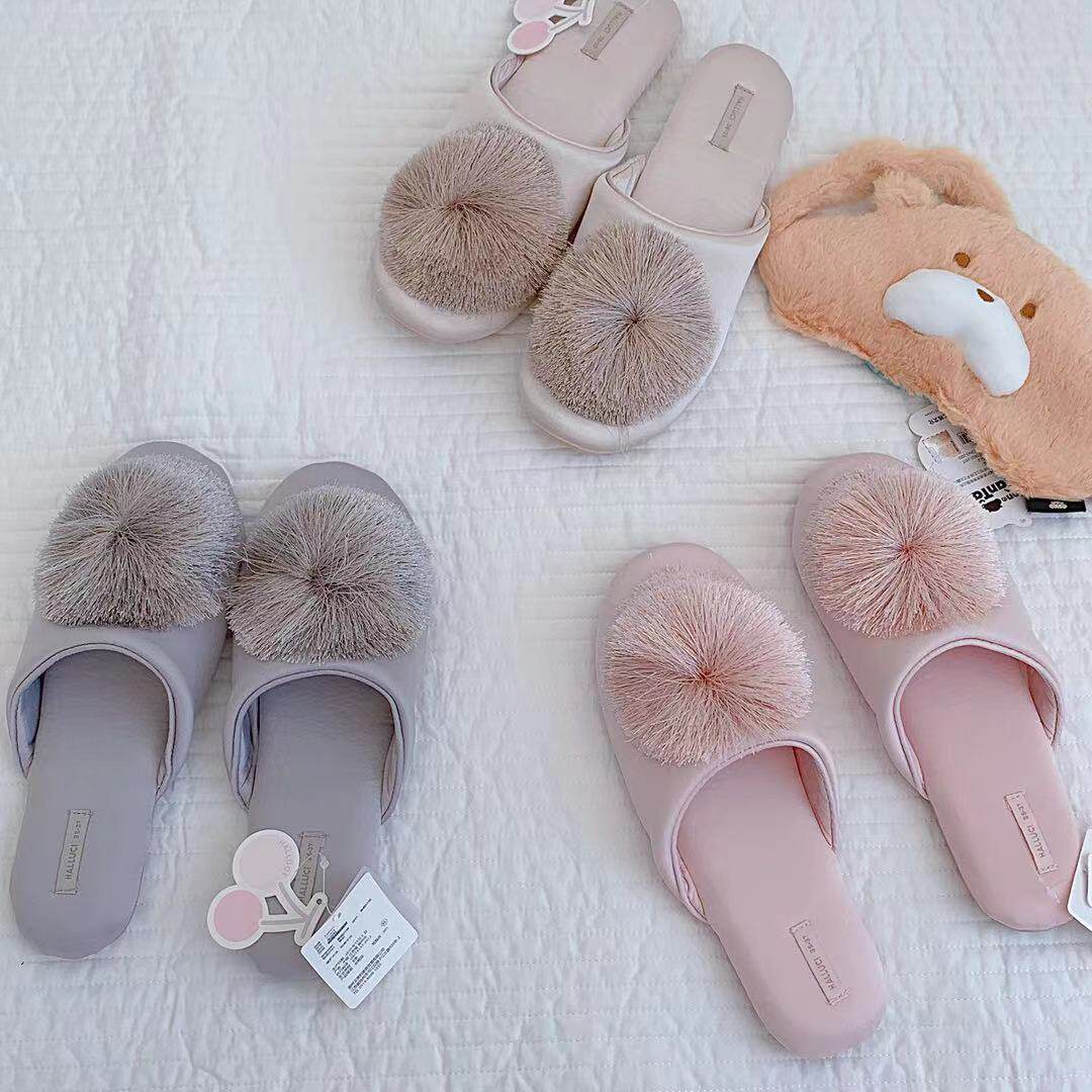 Spring-autumn silk sliding satin pasta fluo ball comfortable home slippers breathable indoor muted non-slip stay-at-home slippers