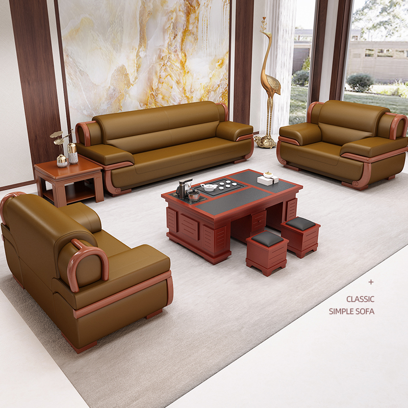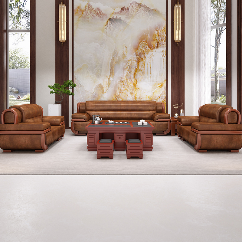 Office Sofa Genuine Leather Owner Business Modern Chinese Hotel Lobby High-end Furniture Tea Table Combined Trio