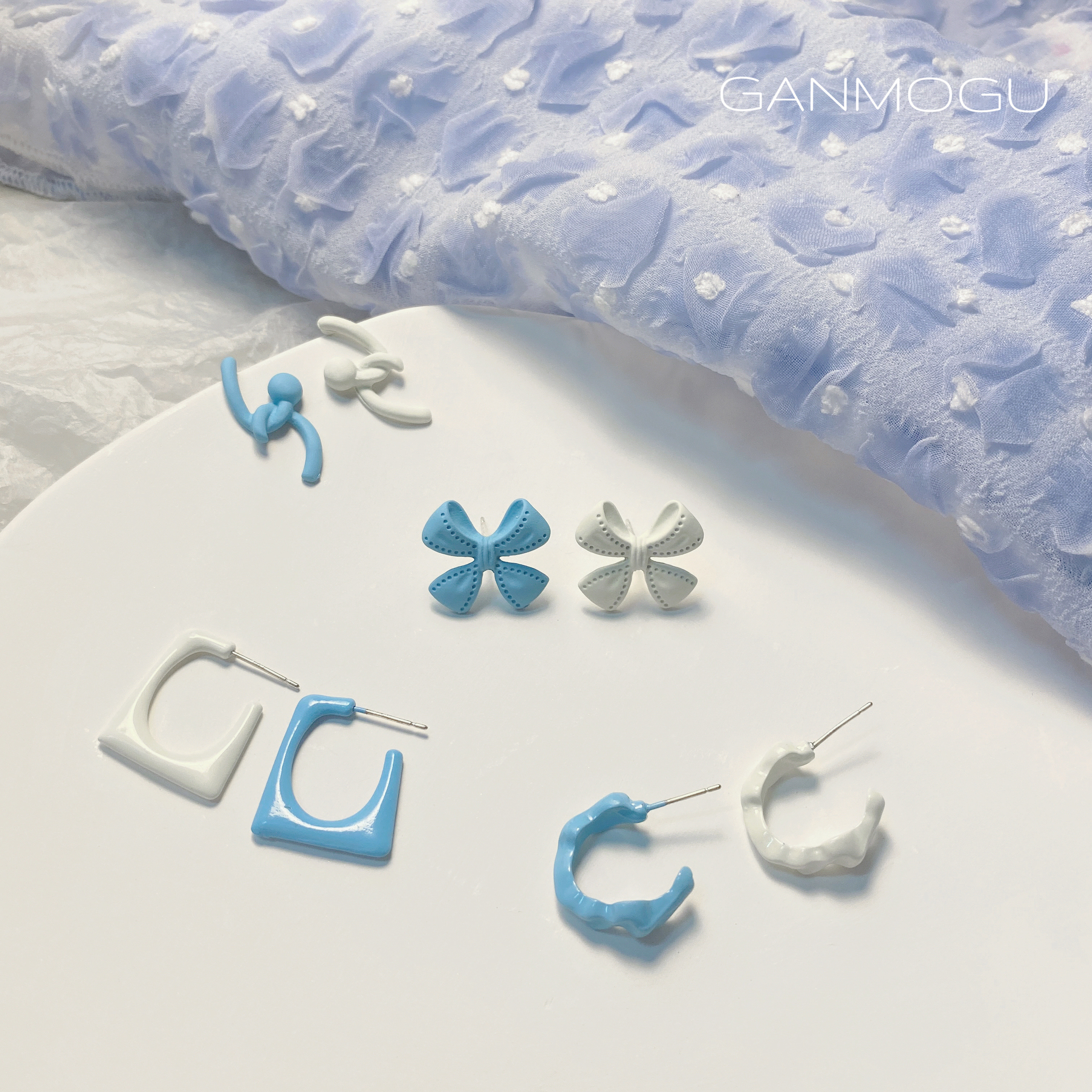 GANMOGU Blue White Asymmetric earbuds Super Fairy Girl Earrings Women in Small Earrings Han