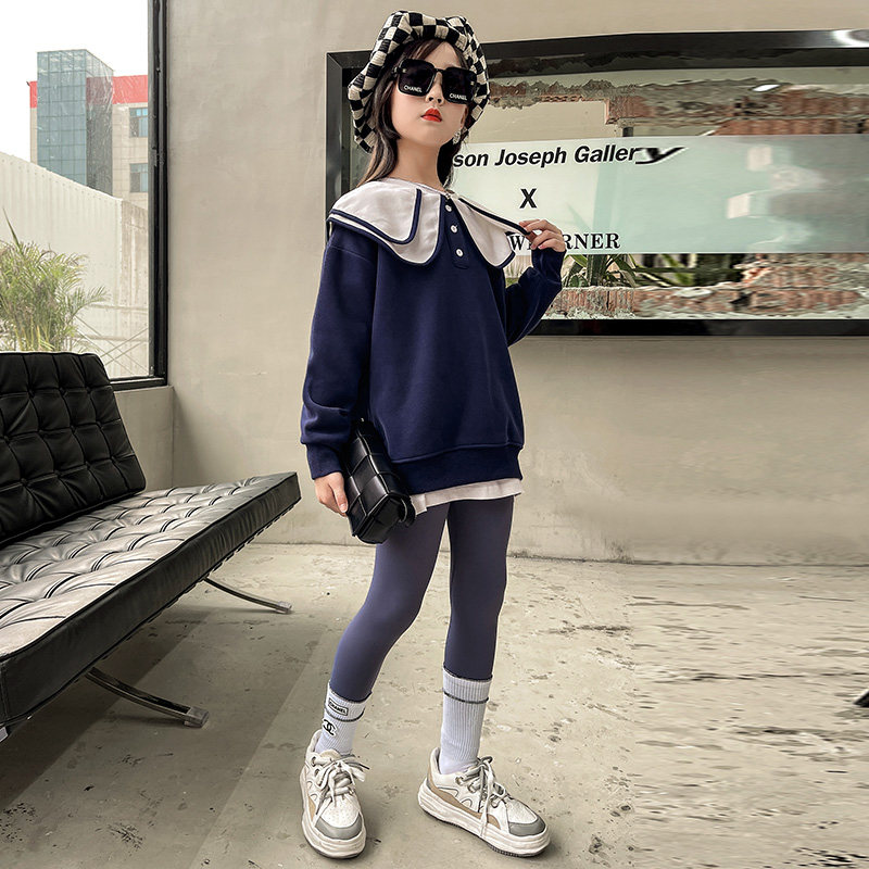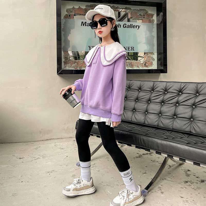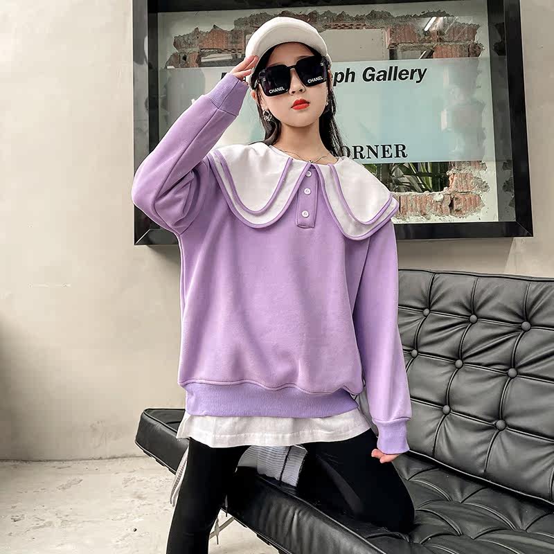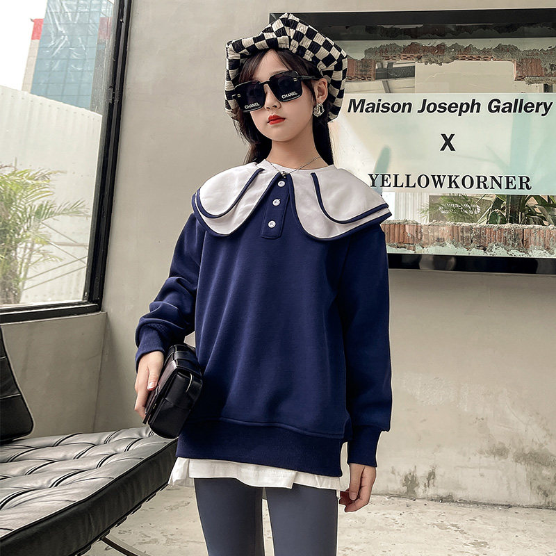 Girl gush thickened thick cotton T integrated suede 2021 new autumn and winter foreign dolls collar Korean version CUHK Tong blouses