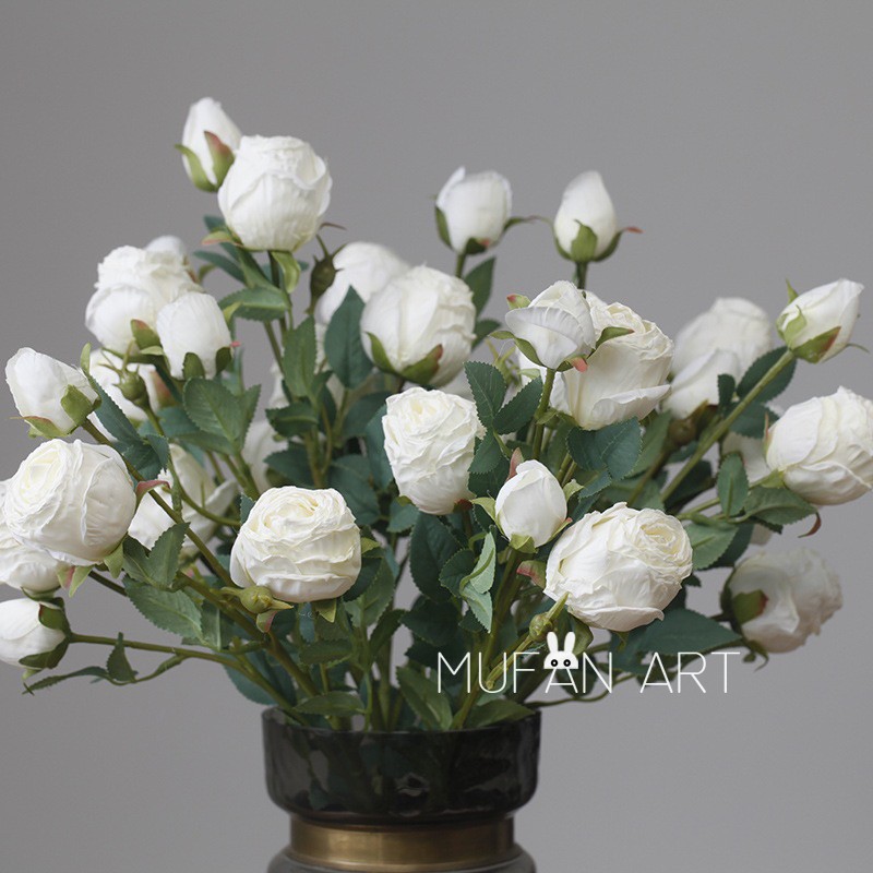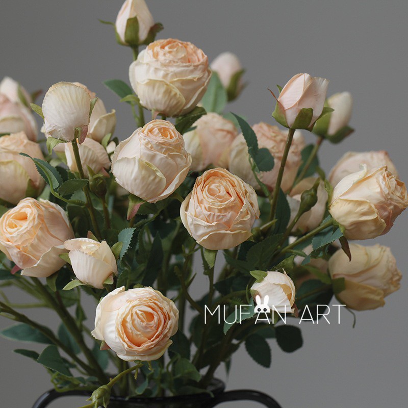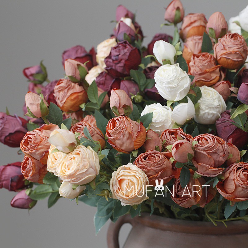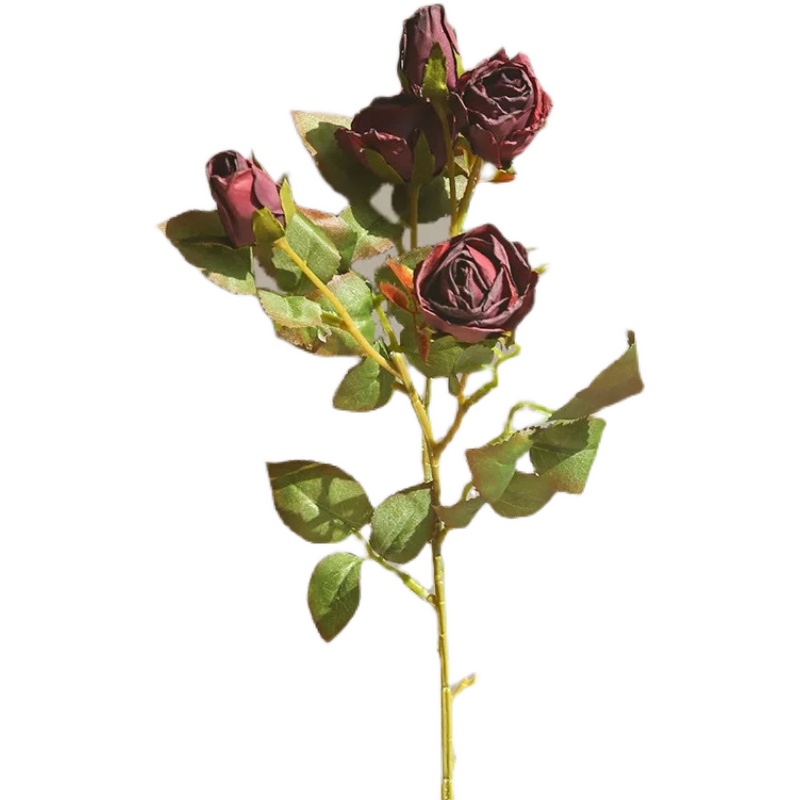 Ins retro burnt edge small rose simulation flower multi-head imitation dried flower rose fake flower home living room wedding decoration flower