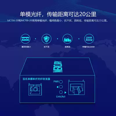 Mercury MC11A-20 100 M fiber optic transceiver single mode single fiber 1 light 4 electricity 8 electricity 3km 20 100 M photoelectric conversion SC Port photoelectric converter long distance network bidirectional transmission enhanced version