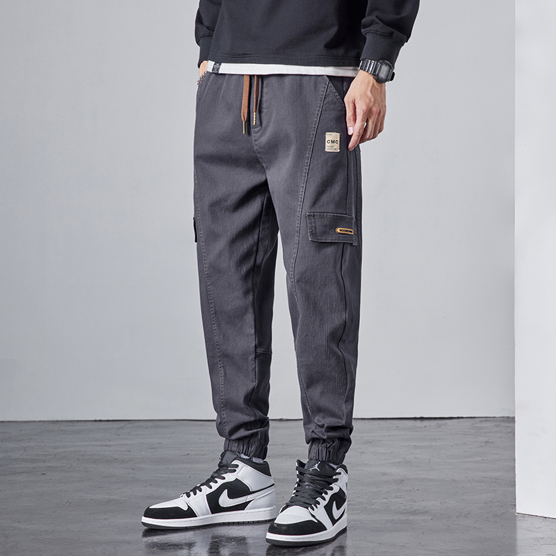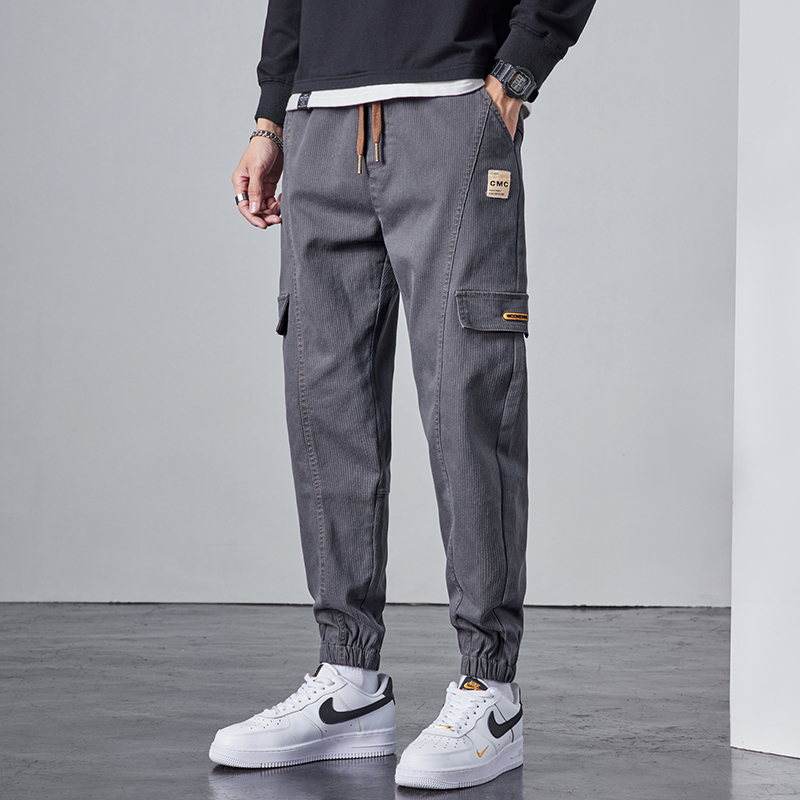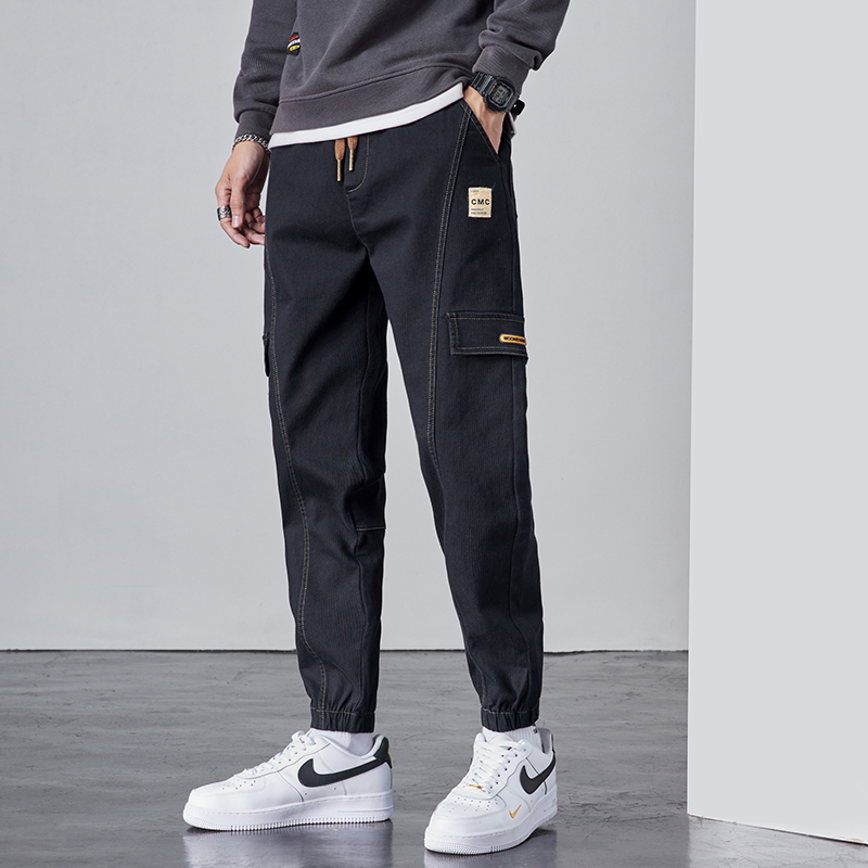 Autumn and winter plus velvet padded men's casual trousers loose Harlan 2021 spring and autumn foot tooling pants men's tide