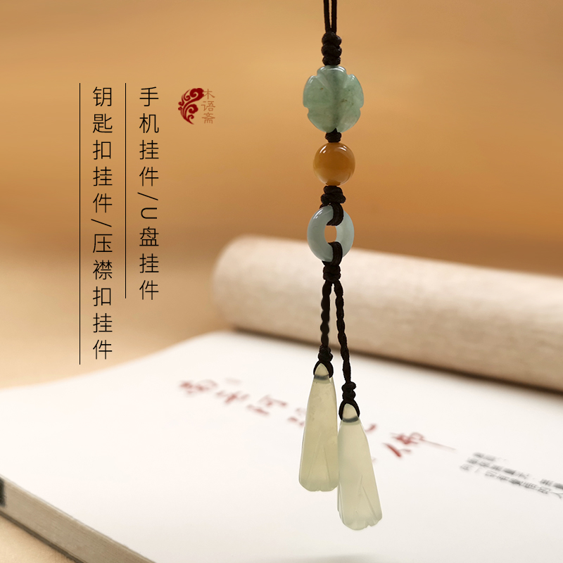 Creative Jade Orchid Jade Mobile Phone Rope Pendant Pendant jade China Wind key buckle with body Disc Fan Pendant Bag Qipao Pendant