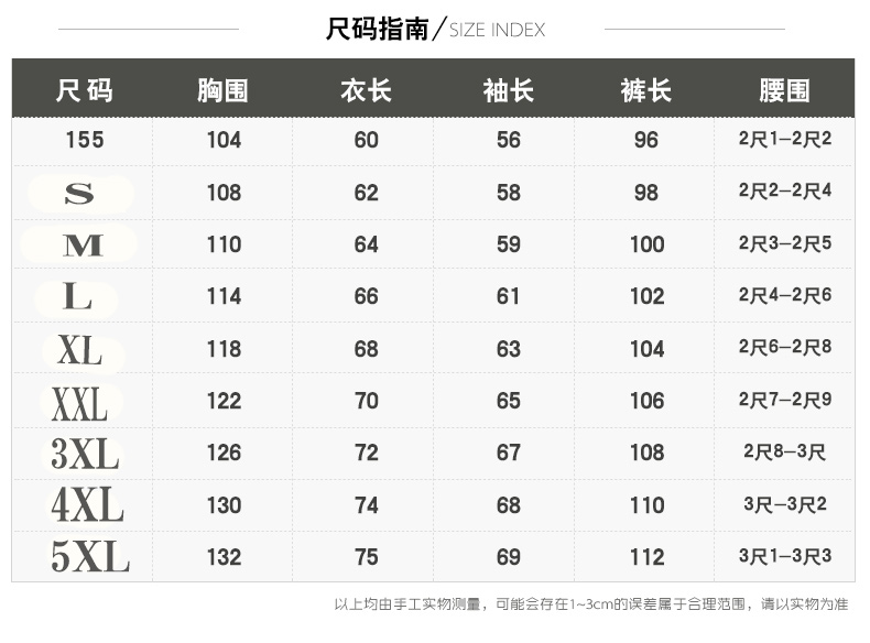 XS(155)S(160)M(165)L(170)XL(175)XXL(180)XXXL(185)4XL(190) size offset