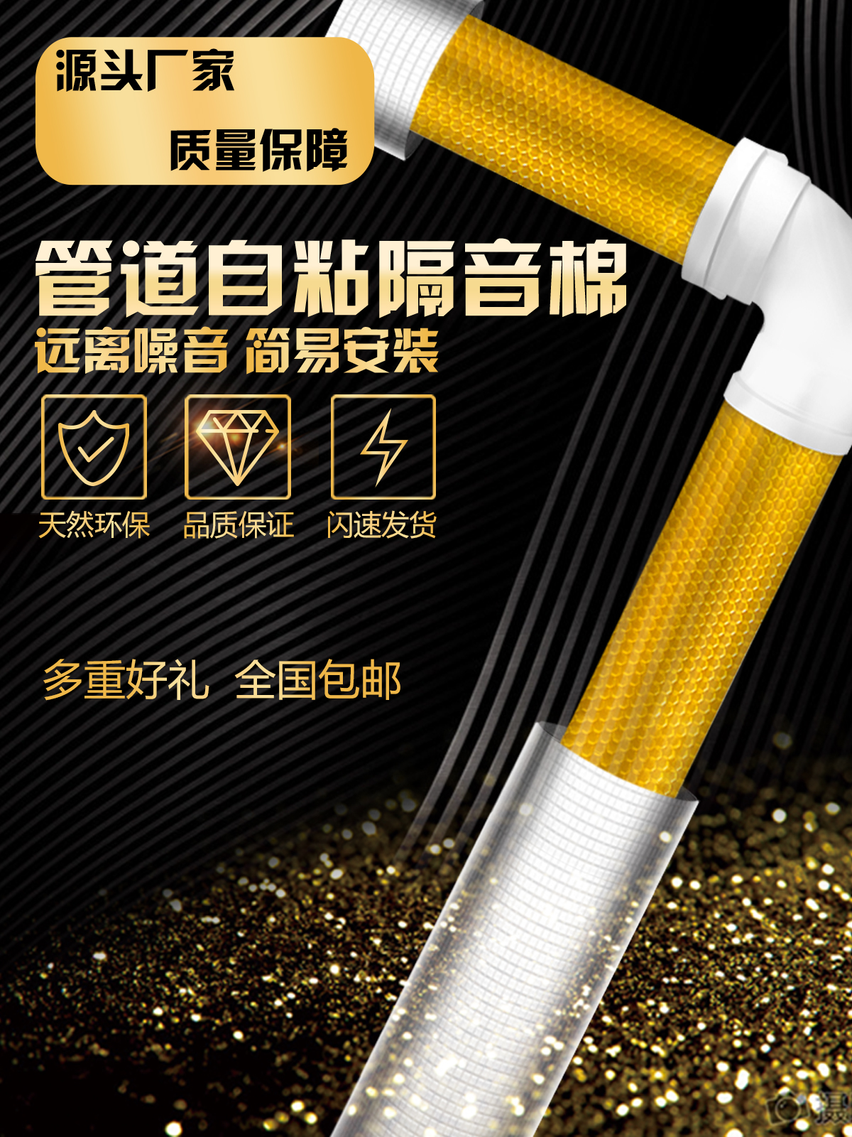 Sound insulation cotton sewer stop shock plate damping sheet adhesive adhesive self-dipping aluminum foil rubber sponge drainage pipe to eliminate noise and noise reduction