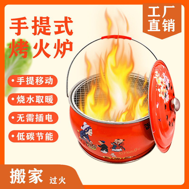 Retro New Charcoal Brazier Moving Overfire Housewarming Overfire BBQ Pot Heating Stove Home Outdoor Grilling Stove