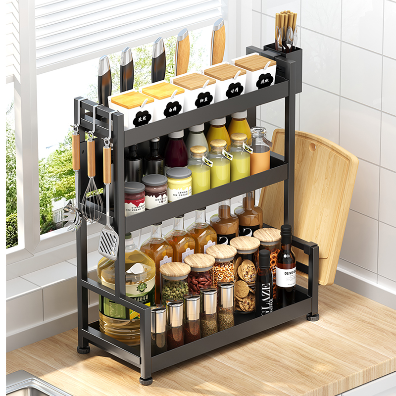 Kitchen seasoning storage rack stainless steel multi-layer seasoning storage rack cutting board chopsticks barrel knife holder countertop multi-function