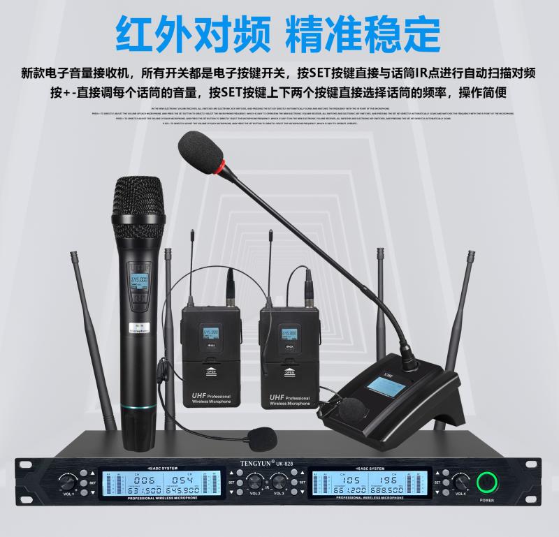 One drag four infrared to the frequency U segment Professional stage performance wireless microphone collar clip head-mounted microphone capacitive live