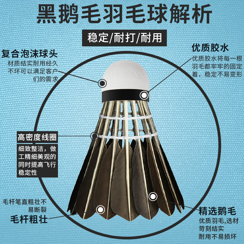 Goose feather black badminton ball can not be beaten, outdoor windproof 12-pack competition professional ultra-durable training ball
