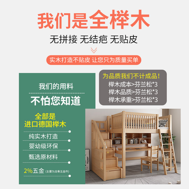 Ladder elevated bed (ladder can be interchanged left and right) Ladder cabinet elevated bed (ladder cabinet can be interchanged left and right) Ladder elevated bed Bookshelf (made of AAA grade beech imported from Europe) Ladder cabinet elevated bed Book