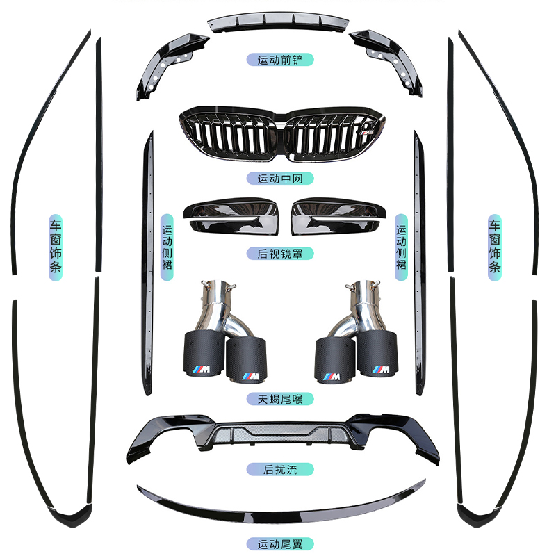 Apply 20-23 BMW new 3-series front Shovel Front Lip Retrofit Mid-Net Side Skirt Rear Scrambler rear Tail Flare MP kit