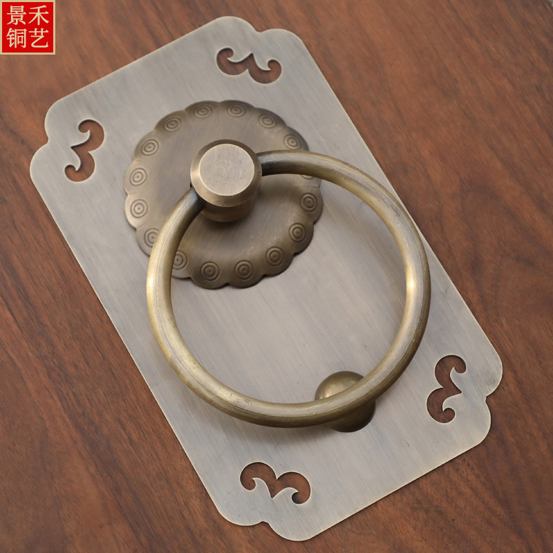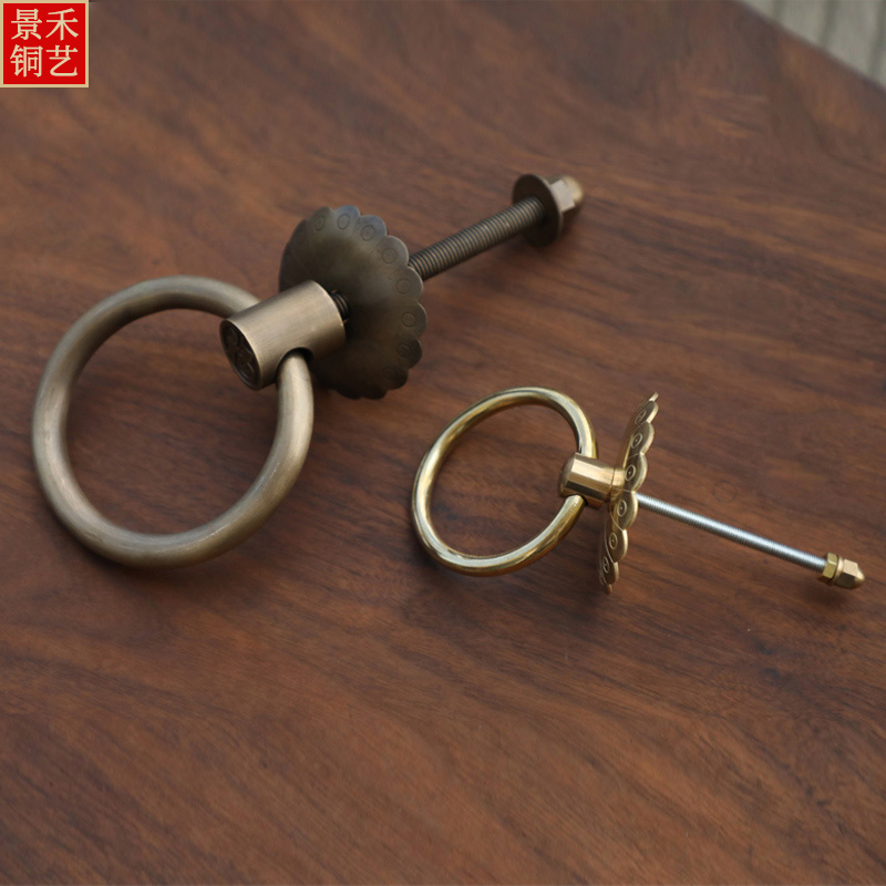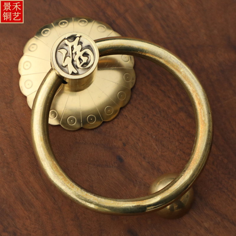 Chinese antique door lion head handle old-fashioned pure copper door knocker retro solid wood door cymbal copper ring tiger head handle