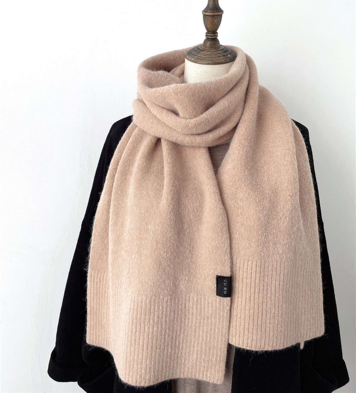 Japanese solid color wool knitted khaki scarf female winter couple models thickened warm scarf for boyfriend gift