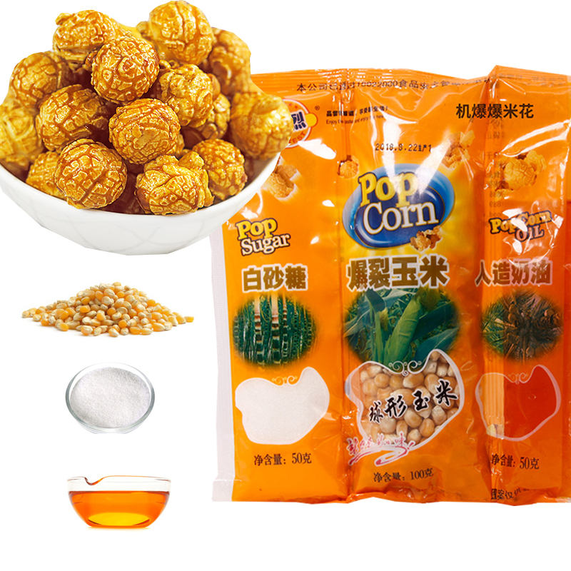 Popcorn 3-in-1 combination of special corn kernel spherical ingredients for various flavors homemade warm caramel set