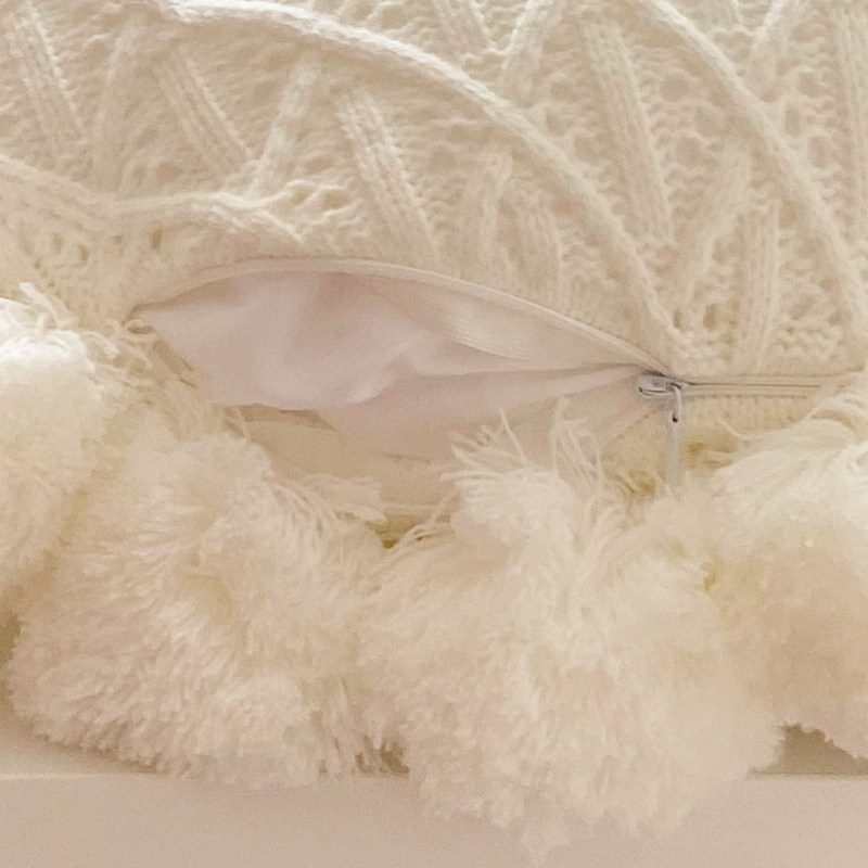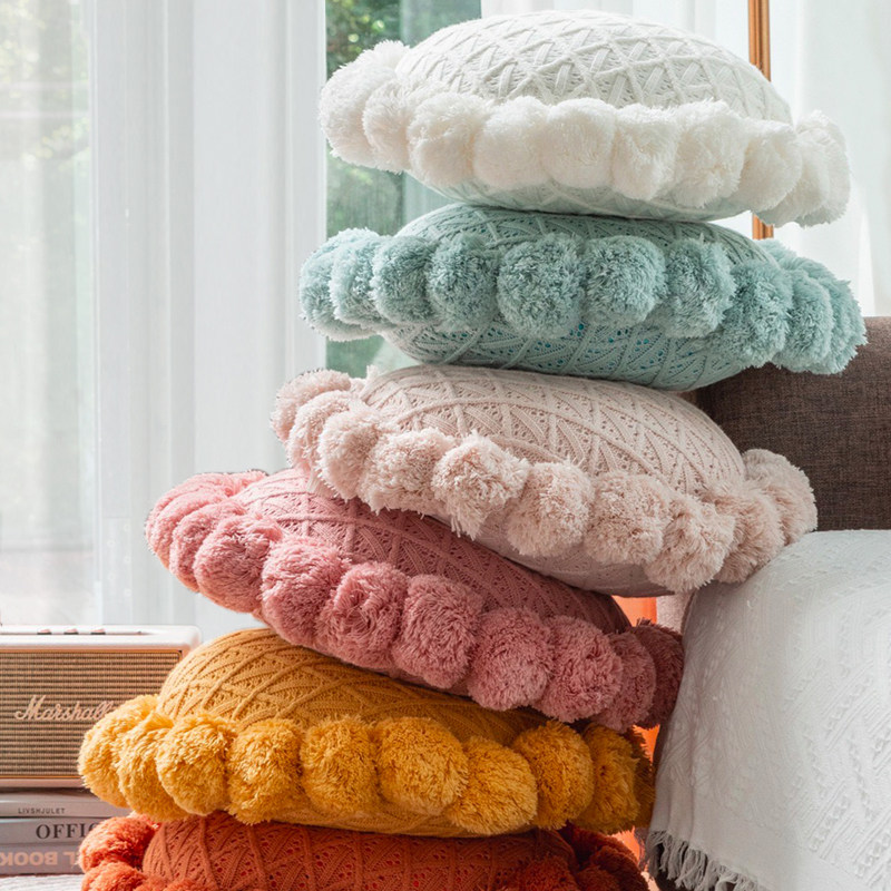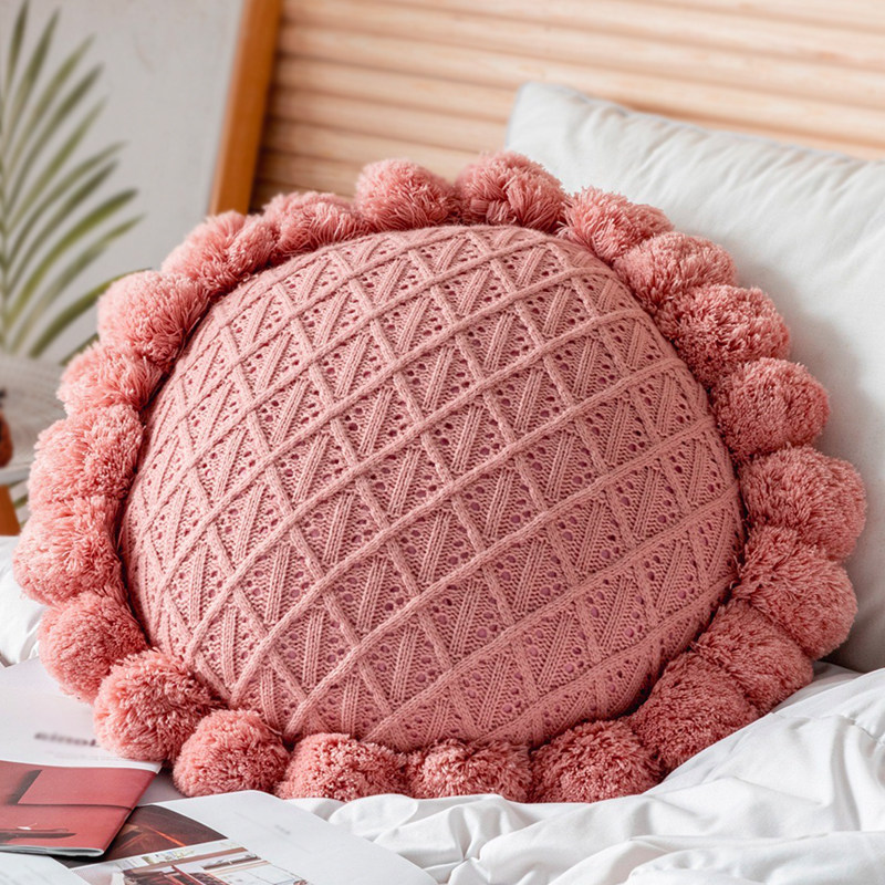 Light and luxurious knitted holding pillow with core round flow Su decoration leaning on pillownet red ins sofa cushions white folk pillow-Taobao