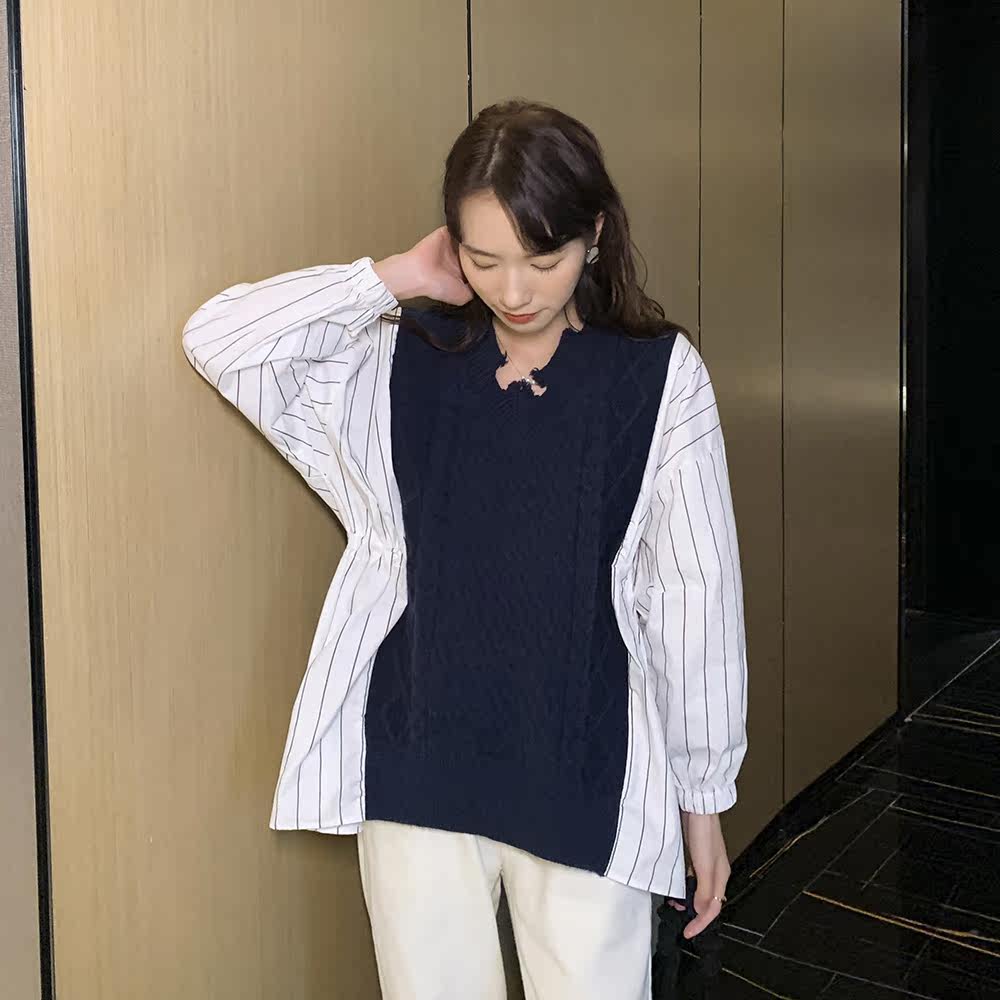 Sweater and striped shirt~Fashion personality stitching maternity shirt spring and autumn net red fried street tide mom go out clothes