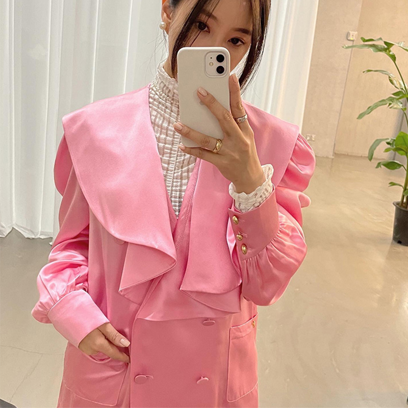 Guoxian Eenk ruffled large lapel loose buttoned shirt women's autumn long-sleeved coat top Park Hyomin with the same paragraph