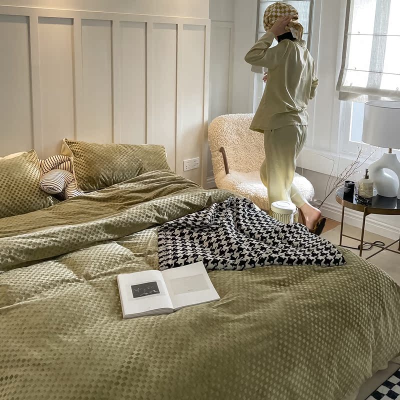 YU soft and velvety chessboard lattice-Jane Blue YU soft and warm suede chessboard lattice-milk green YU soft and warm suede chessboard lattice-apricot currant