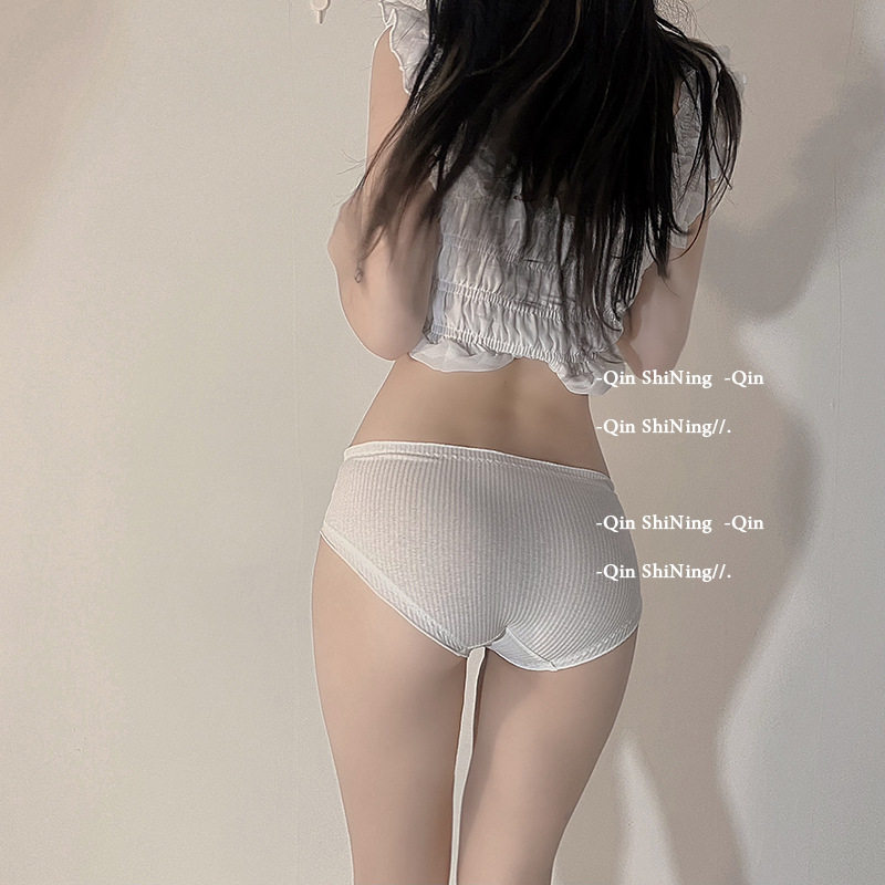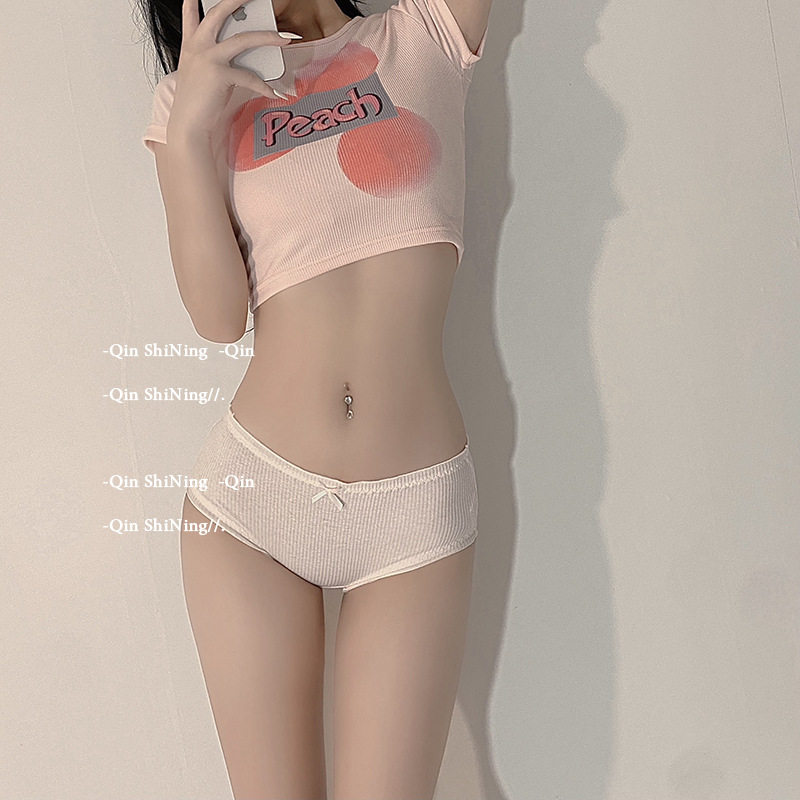 Japanese pure desire threaded cotton underwear mid-waist student bow solid color cotton crotch ruffled girl briefs
