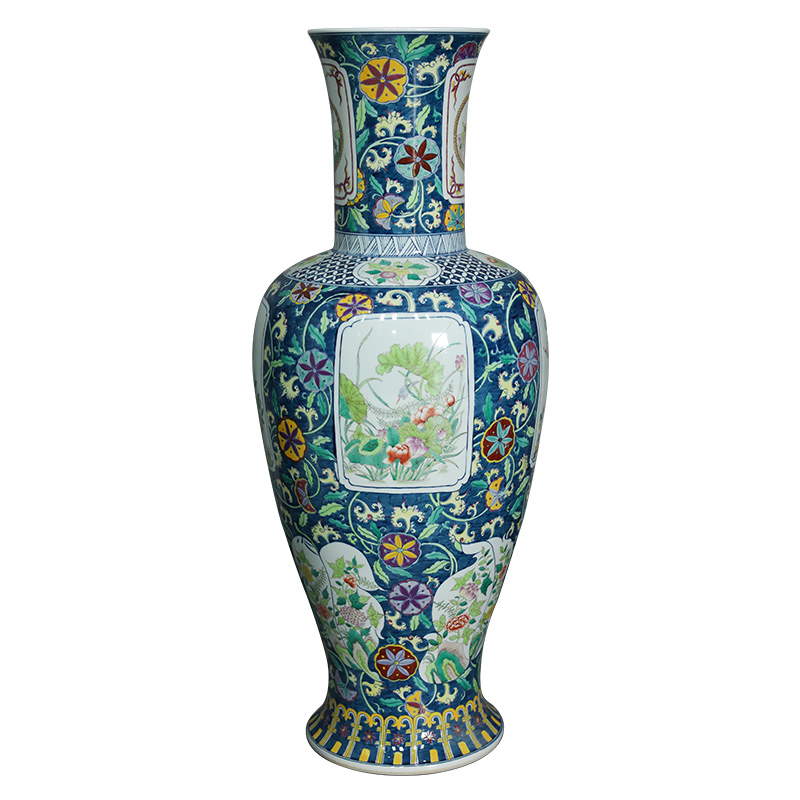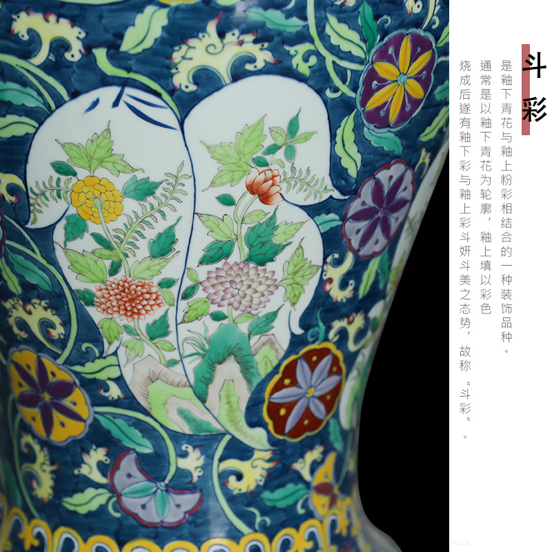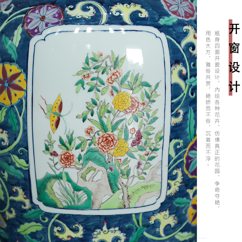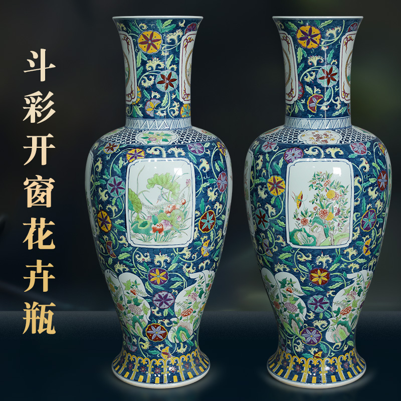 Jingdezhen Ceramic Hand-painted Bucket Color Window Flower Bottle Large Vase Swing room Dining Room Floor Office Porcelain High-end