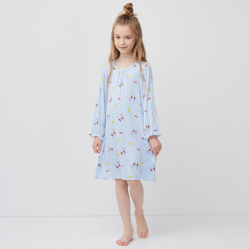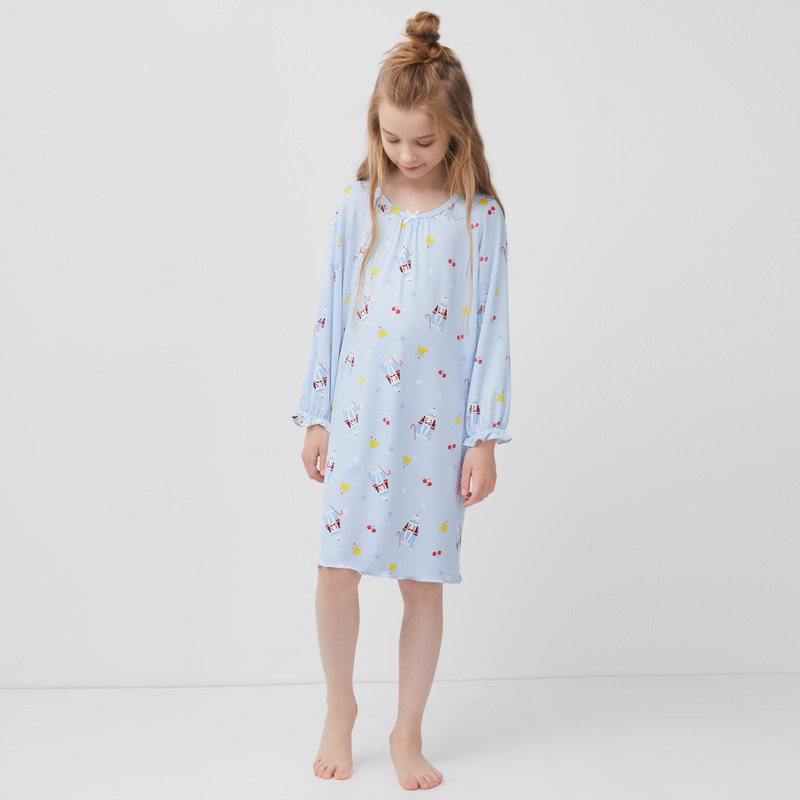 AIMER Children's Official Hu Peach Casket Girl's Home Conserved Long Sleeve Sleeping Skirt AK1444871