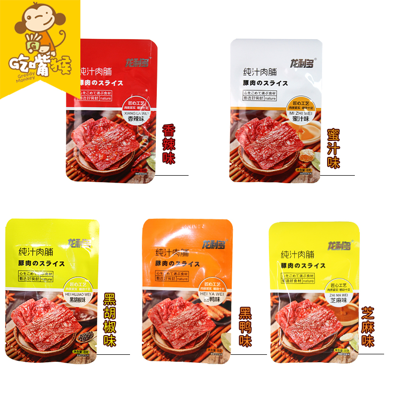 Longliduo contains chicken and pork dried meat, shredded dried meat, spicy honey-flavored dried meat, dried pork, and dried pork individually small packaged snacks