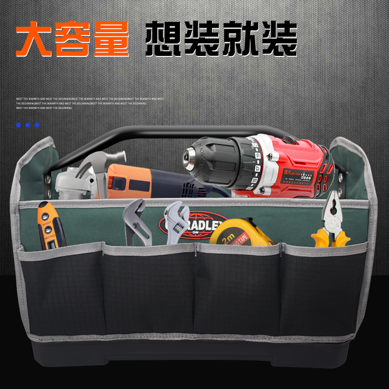 Portable tool bag large-capacity electrician repair woodworking storage wear-resistant tool bag men's durable canvas bag waterproof bottom