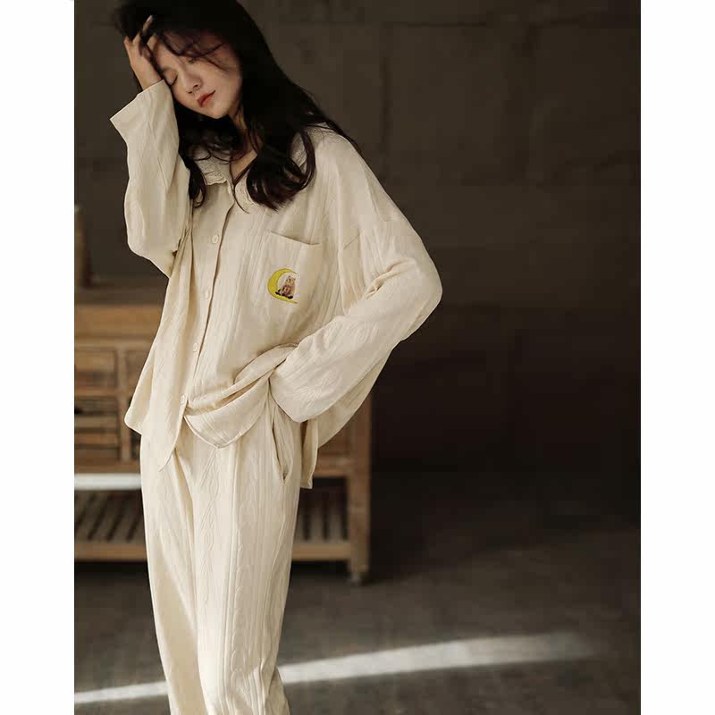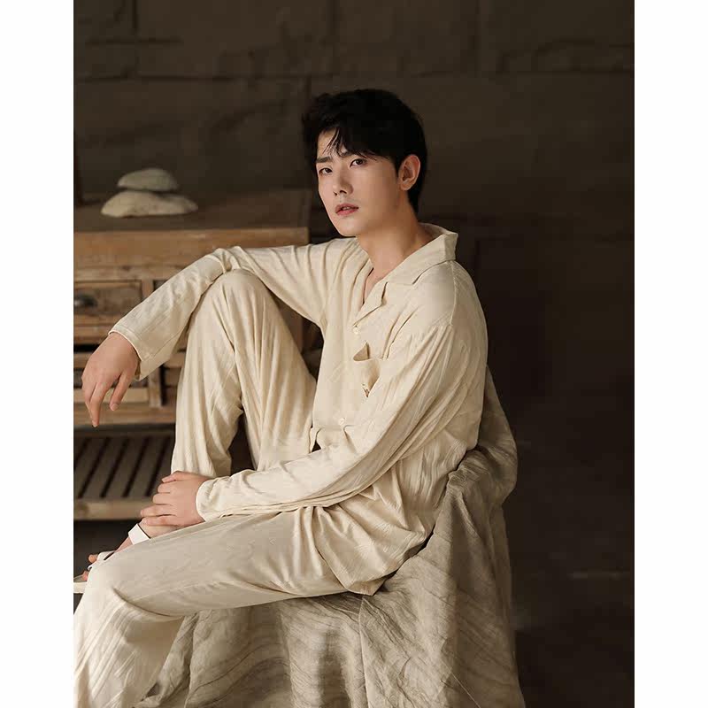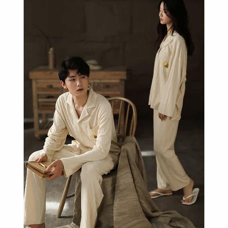 Lovers pyjamas women's spring and autumn models with long sleeves thin section Korean version loose house men's jacquard autumn and winter day two style suits