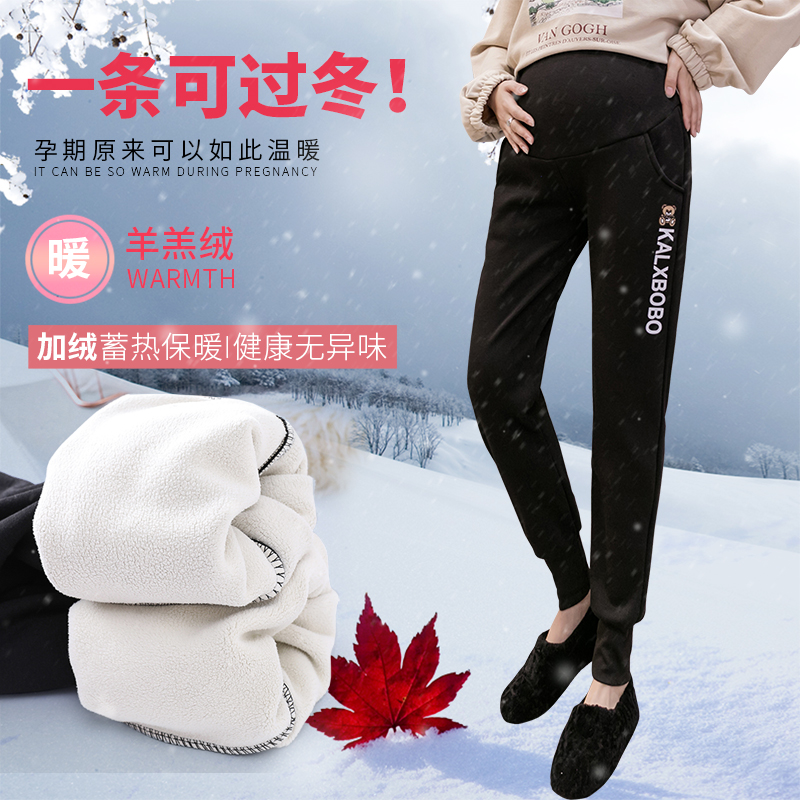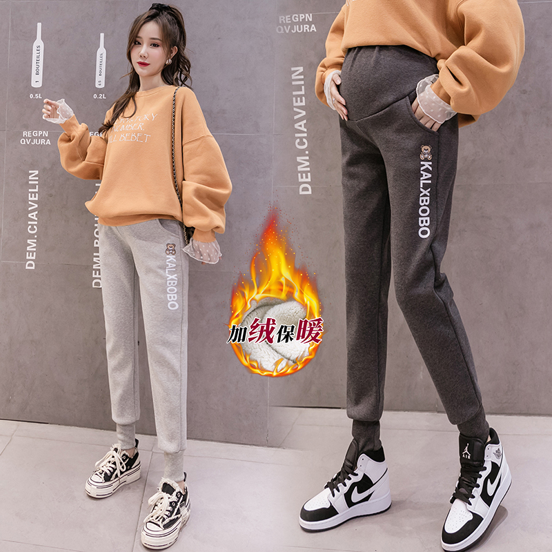 Autumn-winter pregnant woman pants fashion large size for winter plus suede thickened outside wearing long pants casual bunches sports pants winter dress women