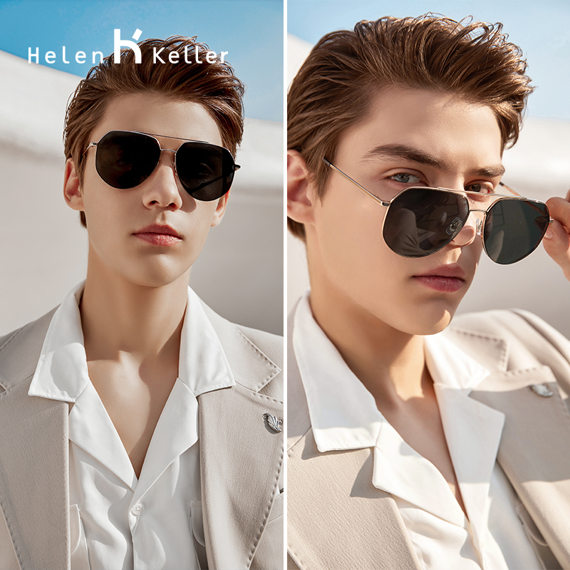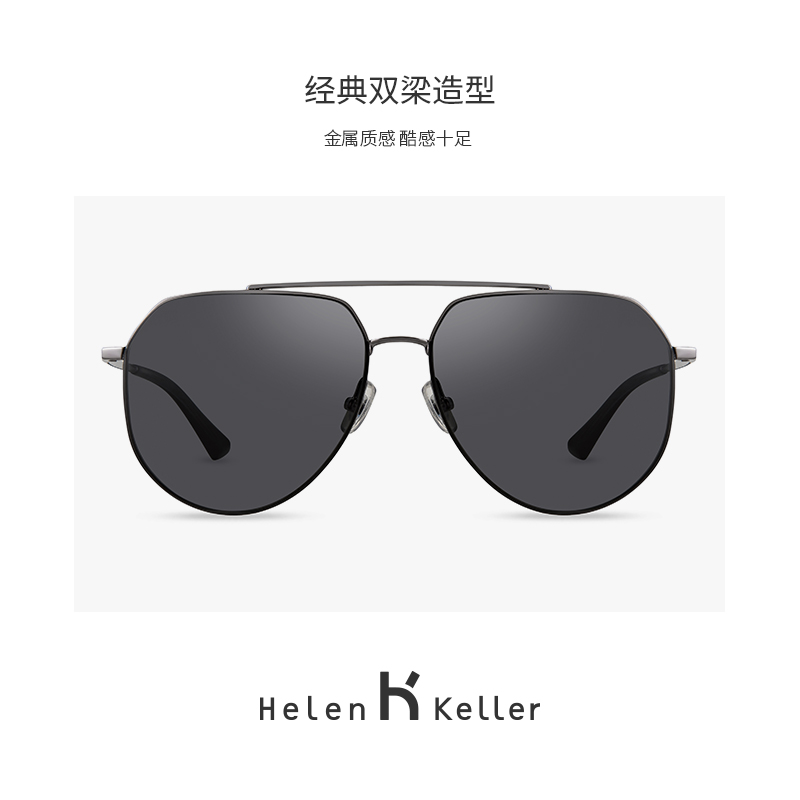 Helen Keller sunglasses square face suitable for wearing glasses double beam pilot polarized driving men's myopia sunglasses