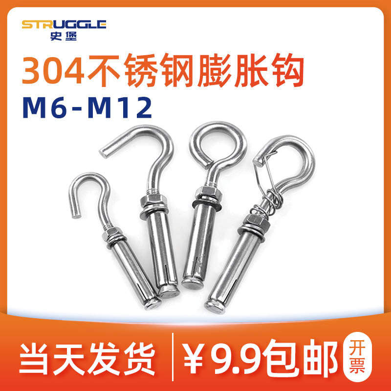 304 stainless steel puffing hook screw universal puffing screw net hook ceiling fan hook fixing hook M6-M12