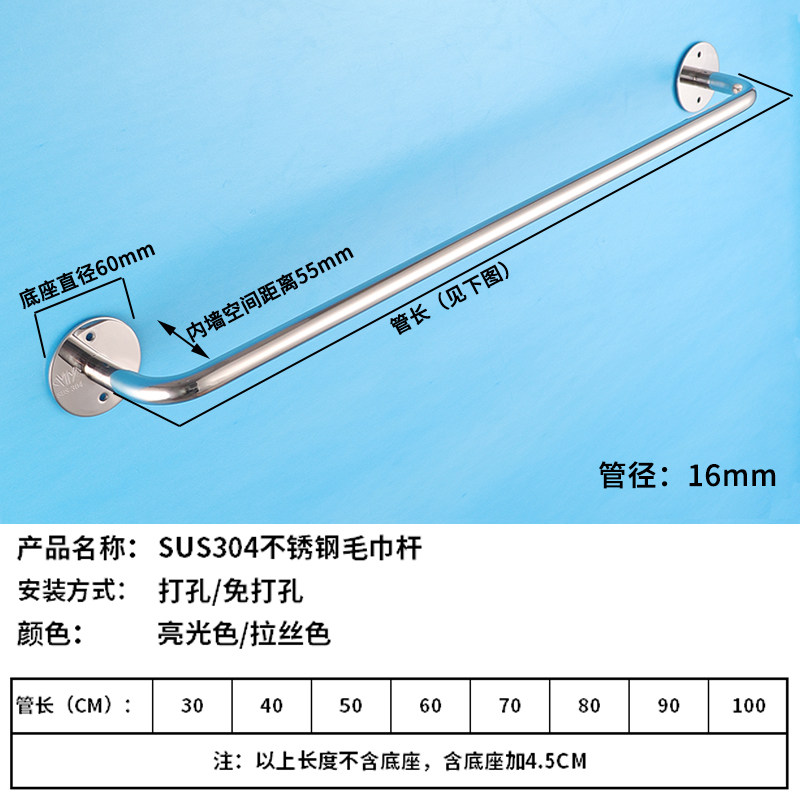 304 Stainless Steel Towel Rod single pole Makeup Room Hair Towel Rack Substiletto Hair Towel Rack Punching Type Towel Hanging Rod